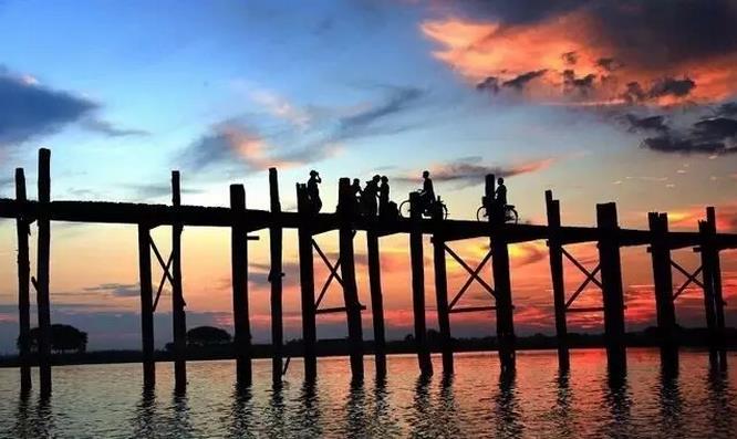 缅甸人于 1849年在古都曼德勒市区建有一座全世界最长的柚木大桥( U-Bein Bridge)。一百多年悠悠地过去了,湖岸百姓仍靠着这座桥生息。