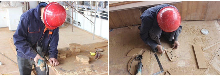 基面处理好后,资深的木工师傅进行现场的实地排版。